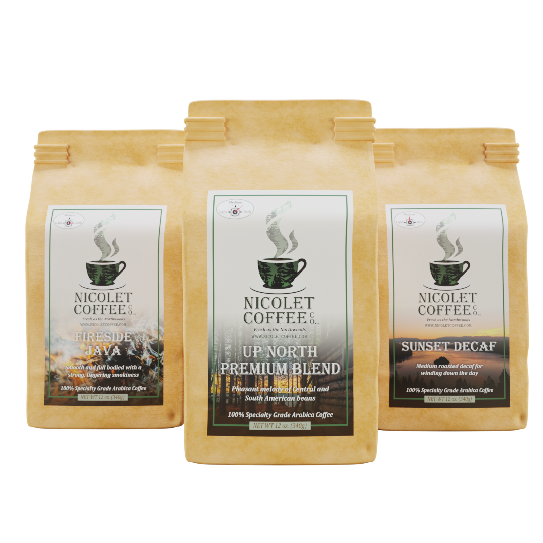 Here at Nicolet Coffee Company, we work and live in the north-central region of Wisconsin and know the Northwoods lifestyle first-hand. We craft our coffee to match the glory of sunrise and sunset over the lake, the energy of a brisk walk through a cool meadow, and the family fun of biking, boating, skiing, and hiking in the most beautiful country on Earth, then ship it to you efficiently, so you can experience the freshness in every savory cup.
